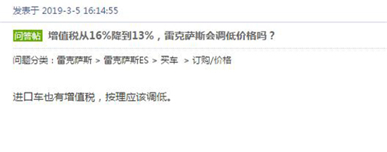 值得注意的是,4月1日,增值税税率将正式下调。奔驰在3月15日打响“降价”第一枪,宝马随即跟进,奥迪目前也已宣布降价。反观,二线高档车市场,除捷豹路虎、沃尔沃外,凯迪拉克、雷克萨斯均无动作。