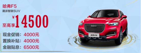 就藏在五感新国潮哈弗F5里,现在购入,至高可以享受价值1.45万元的综合补贴,主要包括4000元现金优惠、4000元置换补贴以及6500元金融礼。