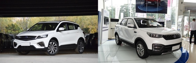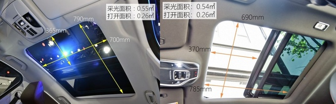 哈弗H4智联版天窗(左)及吉利缤越天窗(右)