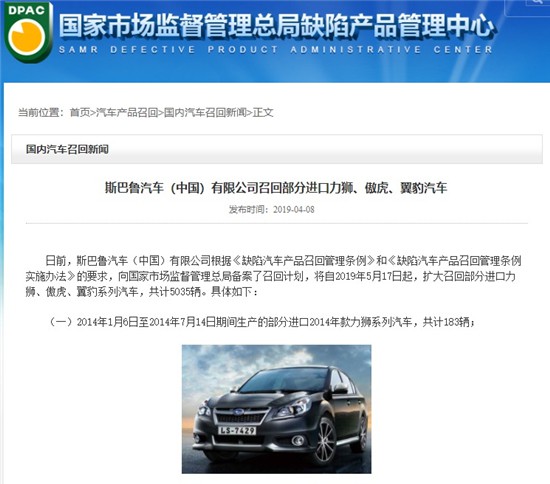 具体来看,4月8日,斯巴鲁宣布因车辆副驾驶席前安全气囊装配了高田公司生产的未带干燥剂的硝酸铵气体发生器,而将召回共计5035辆汽车。这也使得斯巴鲁品牌迎来了召回高峰,上个月,斯巴鲁曾因车辆刹车灯开关接触方式不合理而召回132954辆汽车,并成为当月数量最大的一起召回。
