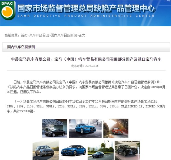 接着在4月16日,宝马又宣布因“高田问题气囊”而召回多达360001辆汽车,且车型覆盖广泛,其中包括272880辆国产华晨宝马118i、218i、220i、316i、318i、318Li、320i、320Li、328i、328Li、330i、330Li、X1及ZINORO 1E、ZINORO 60H汽车;以及87121辆进口宝马116i、118i、120i、125i、130i、218i、220i、318i、320i、323i、325i、328i、330i、335i、340i、420i、425i、428i、430i、435i、440i、520i、528i、530i、535i、540i、550i、640i、650i、M135i、M140i、M2、M235i、M240i、M3、M4、M5、M6、X1、X3、X4、X5、X6、X5 M、X6 M及Active Hybrid X6,几乎涵盖了宝马品牌合资、进口的全系车型。
