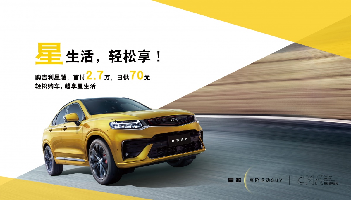 星生活,轻松享,星越更为各位准车主朋友们带来最优质的贷款购车服务,购买吉利星越首付仅需2.7万元,日供只需70元,就可以将星越带回家,开启星生活。