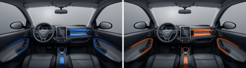 内饰方面,2019款小蚂蚁拥有橙黑、蓝黑两款色系搭配选择,10寸的超大中控台液晶大屏、多功能三幅式方向盘、全新升级的全液晶显示屏、以及一体化的舒适座椅,令座舱兼具年轻的时尚动感与满满的科技范。提升档次感的中控台软触材质,同级独有的中央扶手,中控下方新增的储物格等贴心设计,也体现出2019款小蚂蚁对用户的用心之处。