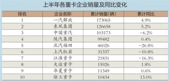 原标题:各梯队目标销量完成度差距明显 细数上半年重卡企业的众生相