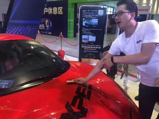 品鉴会期间,济南XPEL汽车保护膜旗舰店市场部总监李冬现场演示了汽车安全保护膜的作用:用一把钢刷在保护膜上用力摩擦,肉眼可见有明显划痕。随后用吹风机(吹风机模拟太阳照射下的自动修复效果)在划痕上吹了30秒左右,划痕就消失了。用试验验证了XPEL汽车安全保护膜的自动修复功能。