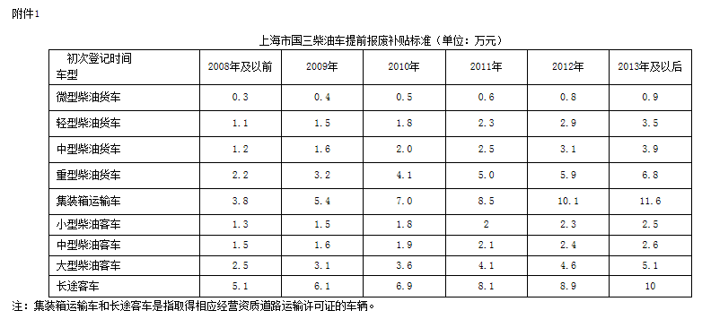 上海鼓励国三柴油车提前报废 客、货车补贴标准公布