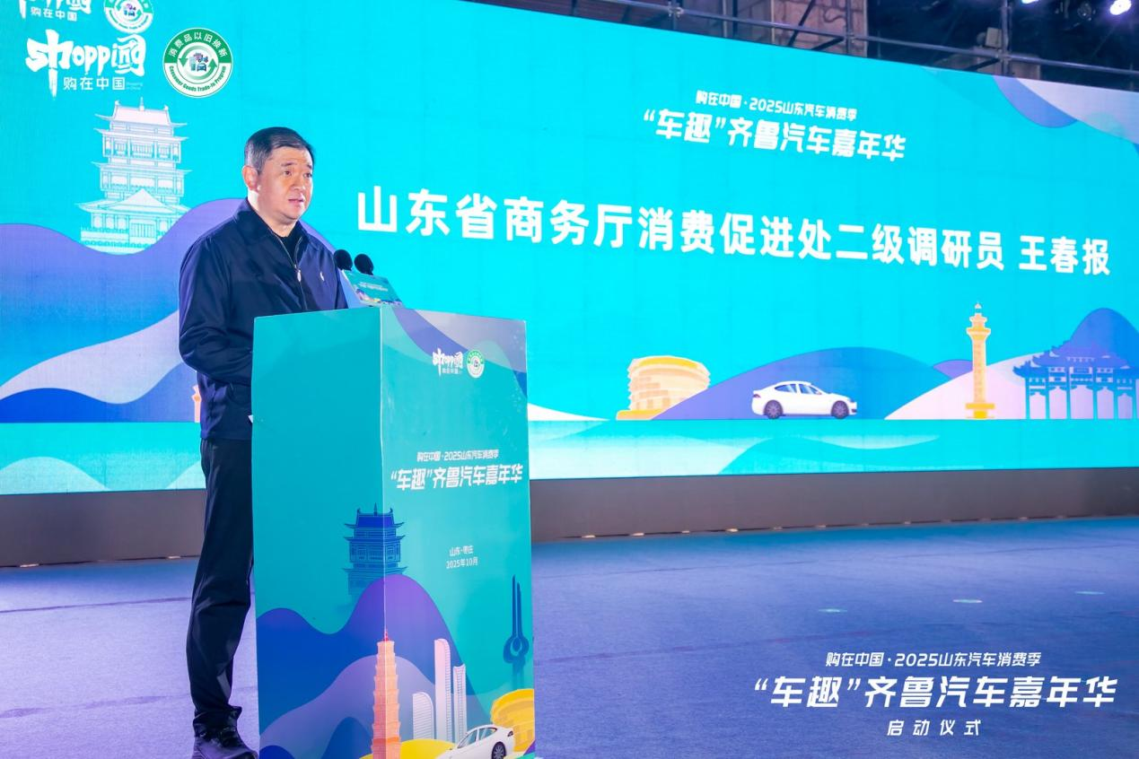 启动仪式上,山东省商务厅消费促进处二级调研员王春报在致辞中强调,省委、省政府始终将提振消费摆在突出位置,以“购在中国”为抓手,已成功举办近4000场各类促消费活动,有效激发了市场活力。本次“车趣”齐鲁汽车嘉年华活动将“消费 + 文旅”深度融合,把车展搬进景区、让文化融入汽车,打造“人在景中选车、车在画中展示”的沉浸式场景,实现了购车消费与文旅体验的双向赋能。下一步,山东省商务厅将以“购在中国·山水圣人飨宾朋”作为全省促消费活动主题,充分挖掘优势资源,结合时令节气,将各项促消费活动串珠成链、聚链成群、集群成势,持续激活市场消费。