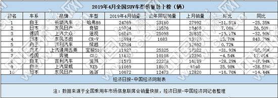 4月SUV:自主疲软集体下滑 GLC入榜显高档强势