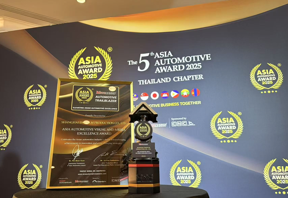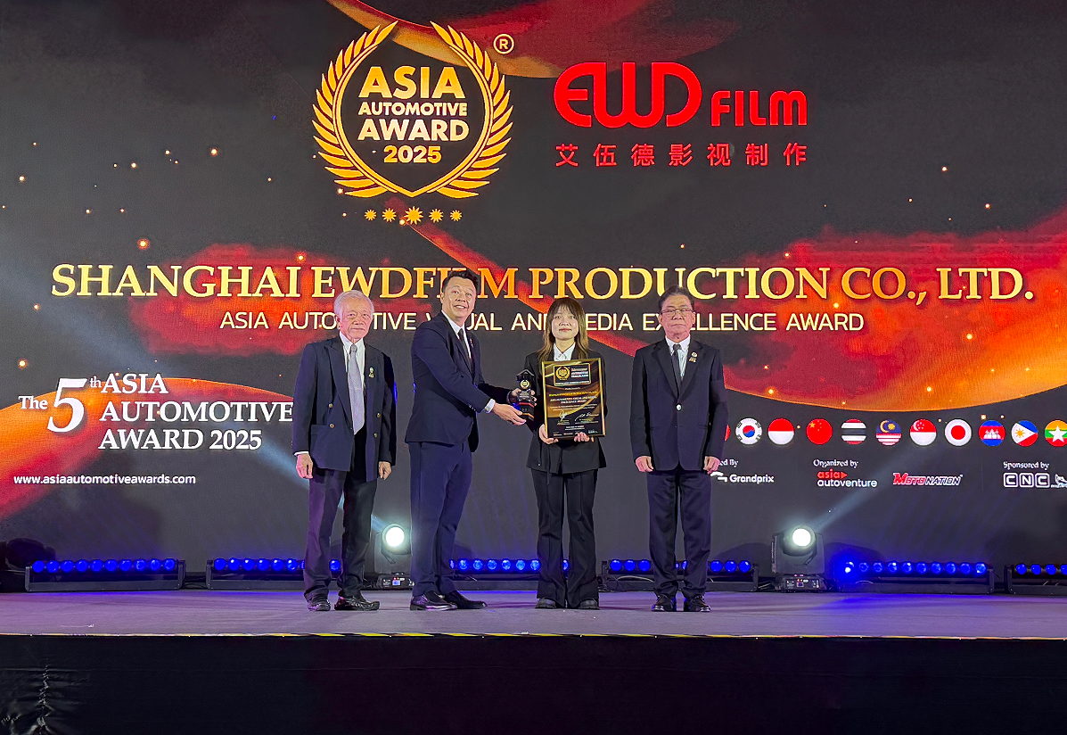 鲁网1月29日讯 第五届亚洲汽车大奖(The 5th Asia Automotive Award 2025)颁奖典礼于 1 月 17 日晚在泰国曼谷举行。上海艾伍德影视制作有限公司(以下简称“艾伍德影视”)荣获“亚洲汽车视觉与媒体卓越奖(Asia Automotive Visual and Media Excellence Award)”。